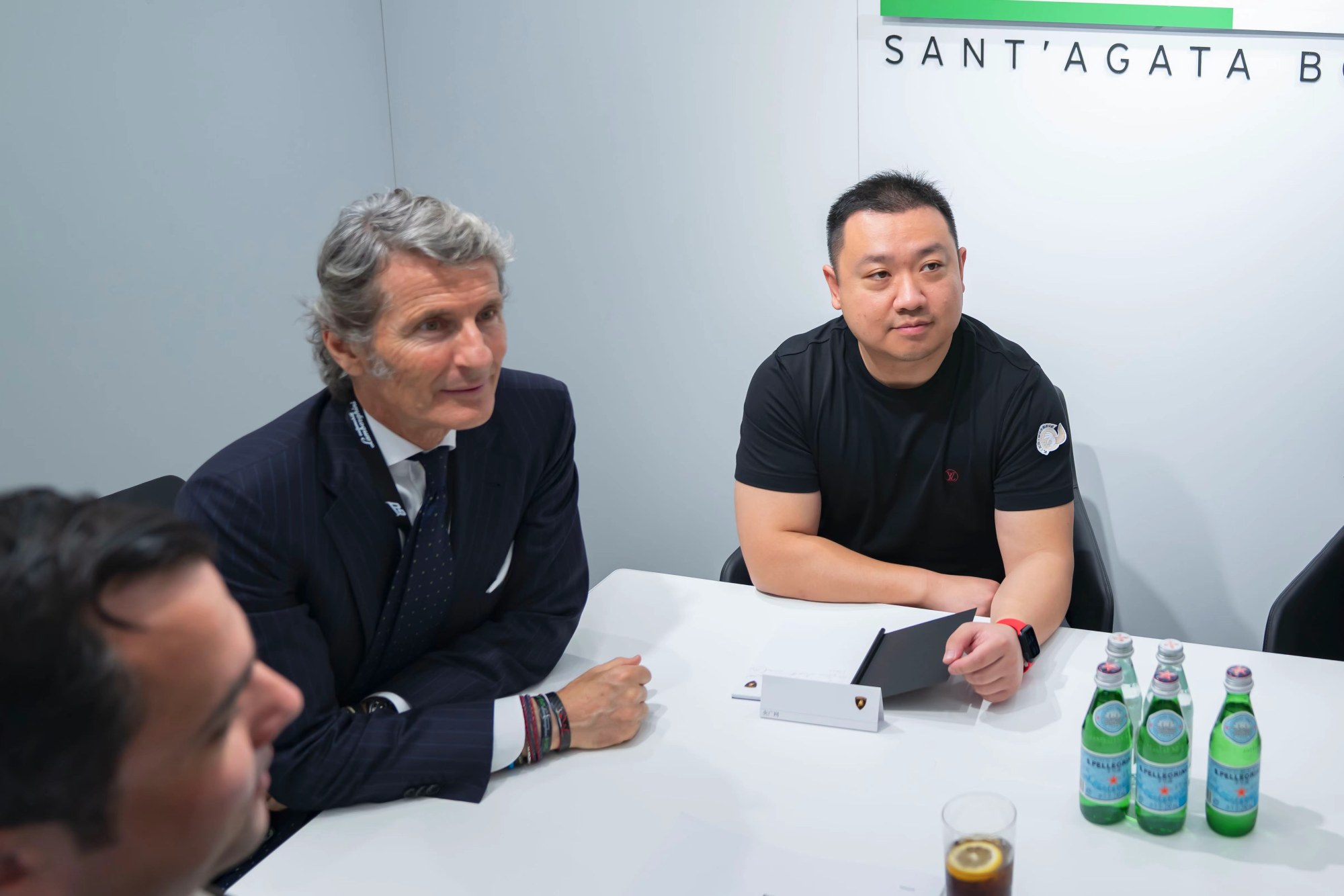 汽车频道主编李伊(右一)对兰博基尼公司主席兼首席执行官Stefan Winkelmann(左一)进行了专访。并继续强化其作为首款超级SUV的地位及永恒的魅力。这些展示了品牌独特的设计理念和非凡性能。