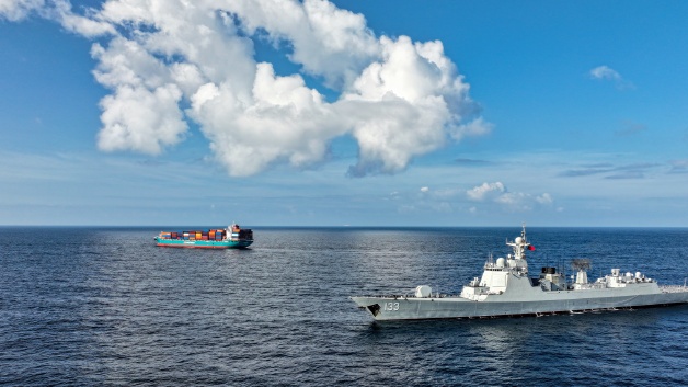 10月9日晚,海军一艘在印度洋航行的紧急救助“新永昌27”号商船上有一名船员发生了烫伤事件,