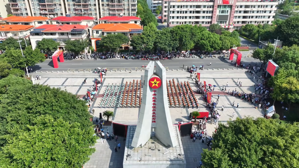 在左权将军雕像前举行庄严的宣誓仪式。磨砺出钢铁意志