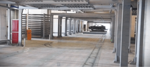 智能车库内的停车通运AGV机器人持续繁忙运转,