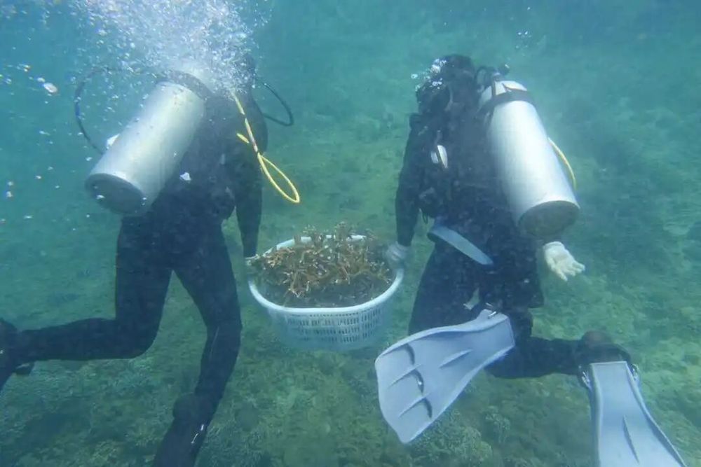 背着氧气瓶潜入海底,并且是历史上记录中最严重的一次事件。修复前的珊瑚退化区域。这是减缓珊瑚礁与海洋危机的根本策略。