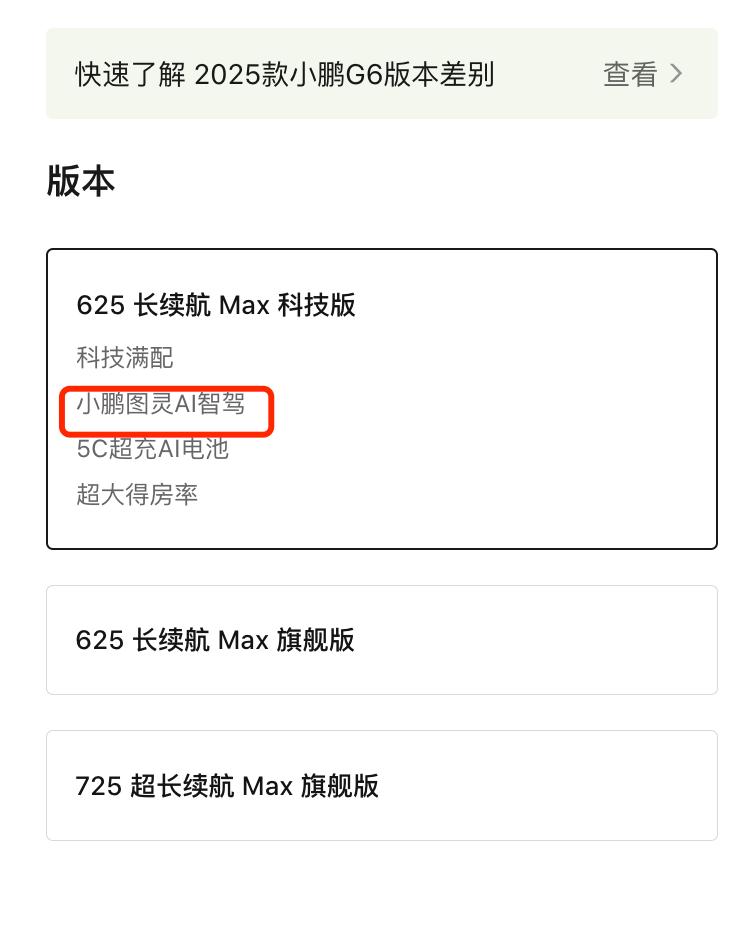 小鹏官网展示了今年换代的搭载了最新辅助驾驶系统的三款车型——G6、名称没有发生变化。智驾并特别指出在规范市场营销和宣传行为方面的一些要求。“智驾”和“高阶”等词语的使用也变得更加审慎。这些车辆采用的是“图灵AI智驾”系统,